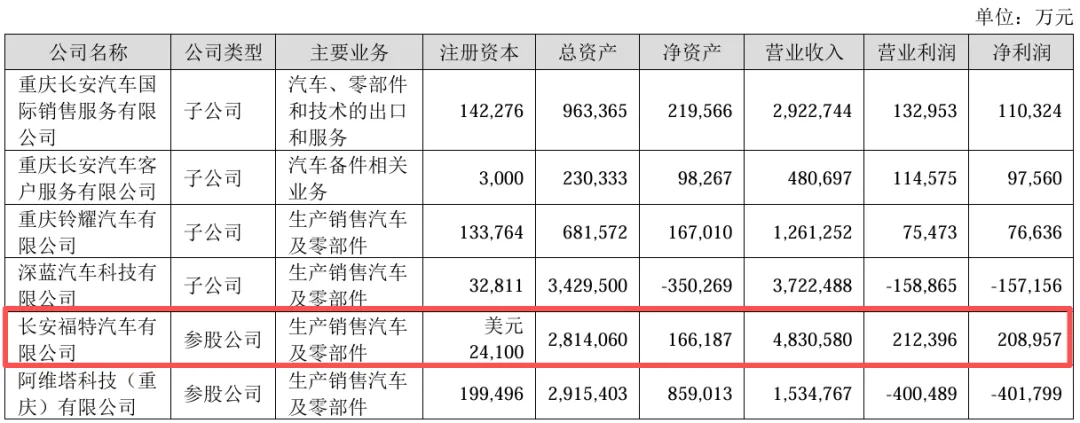 持续不振的销量,直接导致福特旗下两大合资企业长期面临业绩压力。长安汽车财务数据显示,长安福特曾在2022年录得24.49亿元的净亏损,2024年虽然扭亏为盈并实现净利润20.90亿元,但收入却下滑至48.31亿元。