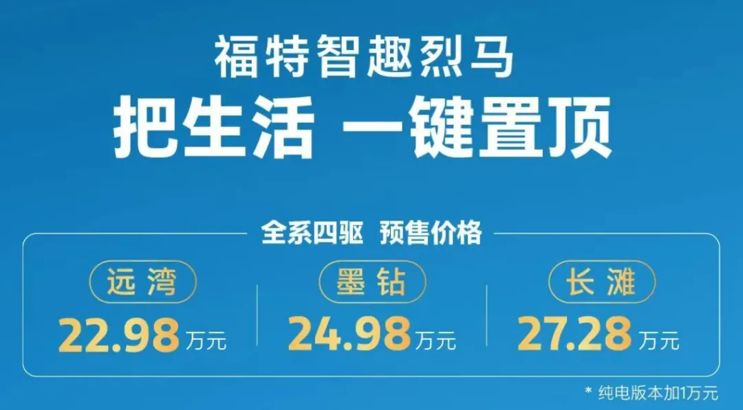 11月21日上市的全地形露营SUV“福特智趣烈马”,便是福特汽车在新能源领域的重要落子。该款车型预售价为22.98万至27.28万元,提供纯电与增程两种动力版本,旨在满足用户“可城、可玩、可野”的全场景用车需求。